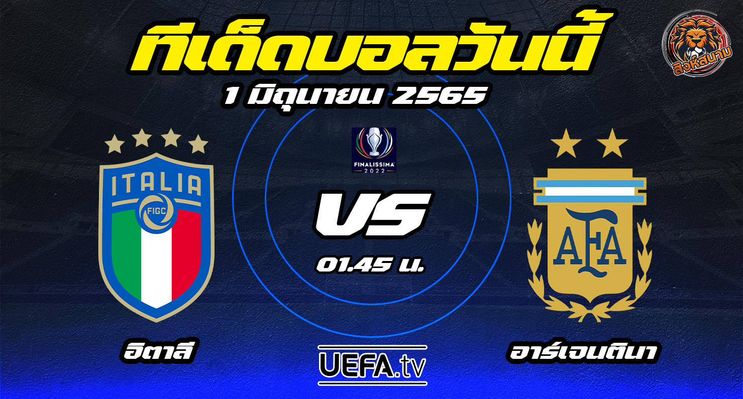 ศึกแชมป์ชนแชมป์ อิตาลี แชมป์ยูโรเกมนี้แม้จะไม่มี ชิโร่ อิมโมบิเล่ ดาวยิงตัวเก่งที่เจ็บแต่ตัวหลักคนอื่นอยู่กันครบ ขณะที่ อาร์เจนติน่า แชมป์โกปา อเมริกาไร้พ่ายมา 31 เกมติดทุกรายการ นำทัพมาโดยสตาร์ดัง อย่าง ลิโอเนล เมสซี่ ดูแล้วน่าจะเป็นเกมที่แลกกันสนุก เกรดบอลสูสีกันโอกาสจบด้วยผลเสมอมีสูง