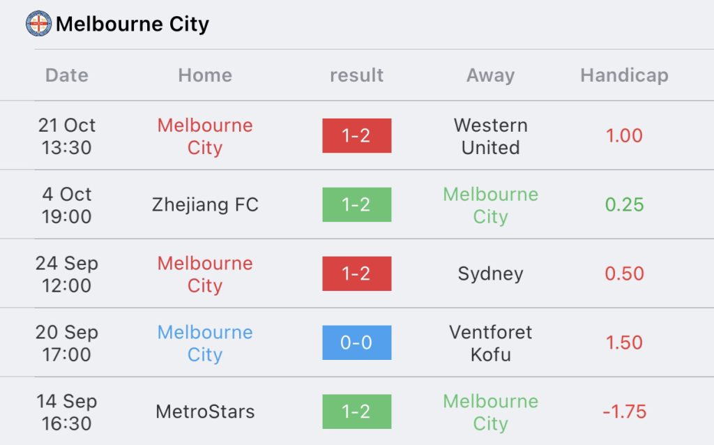 สถิติ 5 นัด เมลเบิร์น ซิตี้
