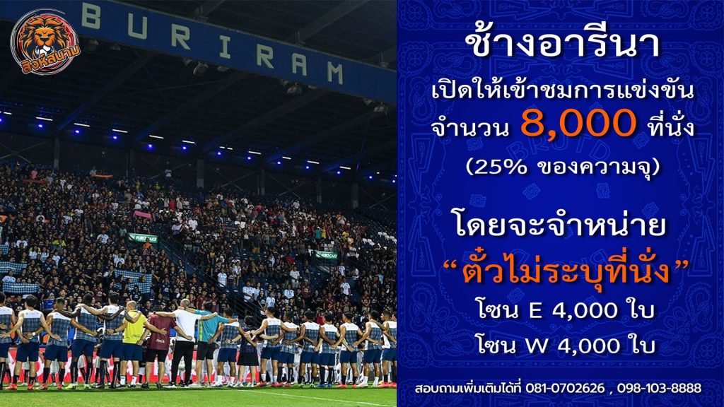ความเคลื่อนไหวของสโมสรบุรีรัมย์ ยูไนเต็ด ยักษ์ใหญ่ ทีมแกร่งในศึกไฮลักซ์ รีโว่ ไทยลีก 2021/22 ล่าสุด เปิดจำหน่ายตั๋ว 8,000 ใบ ให้กับแฟนบอลที่ฉีดวัคซีนครบ 2 เข็มตามมาตรการป้องกันโควิด-19