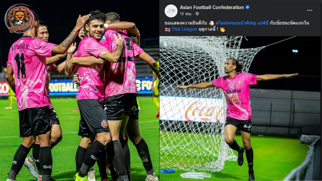 แฟนเพจของ Asian Football Confederation โพสต์แสดงความยินดีกับ ทีมหนองบัว พิชญ เอฟซี ที่สามารถคว้า 3 แต้มแรก ในประวัติศาสตร์การแข่งขันฟุตบอลไทยลีก 1 ได้สำเร็จ