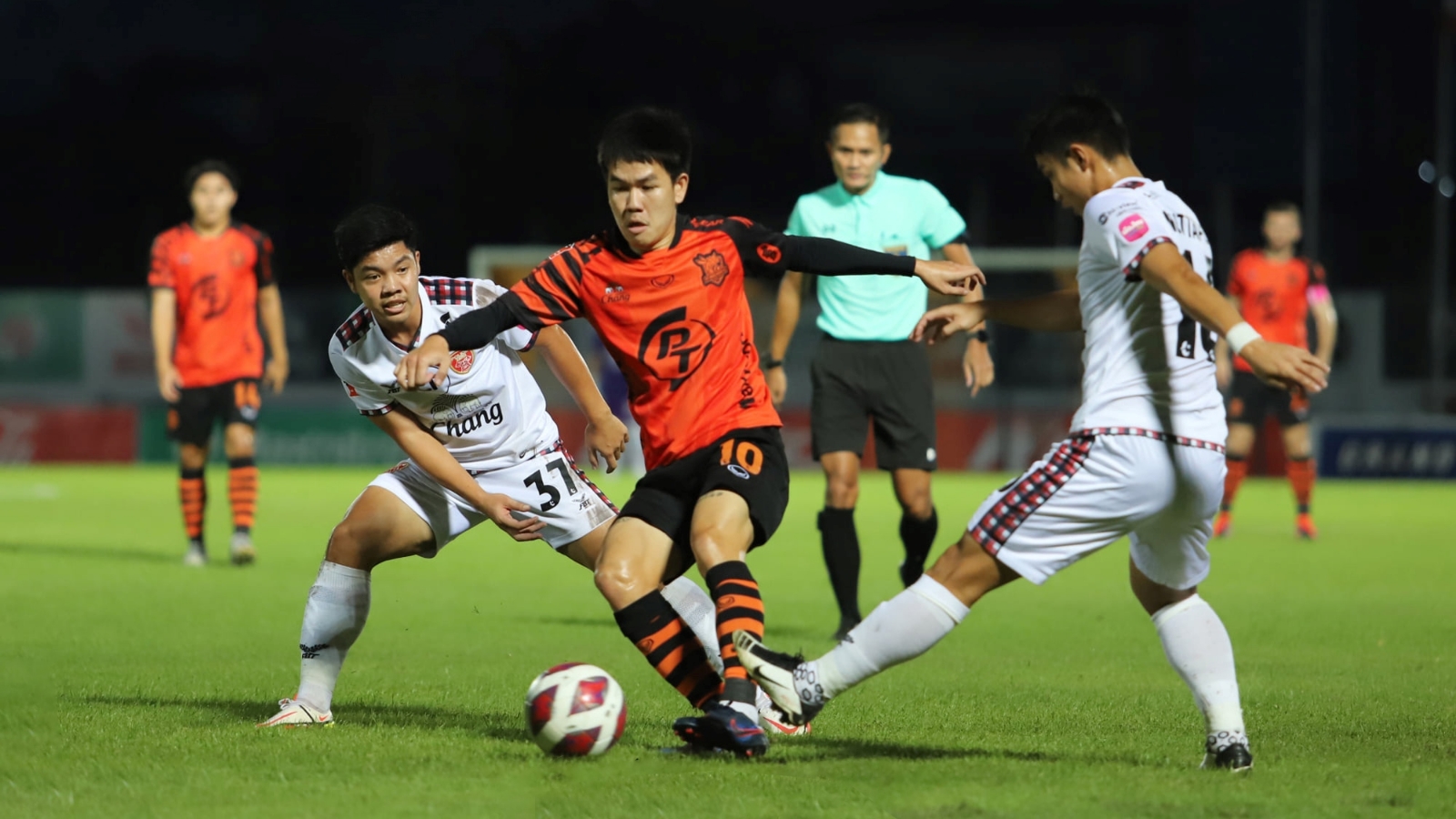 แต่แล้วนาทีที่ 90+6 อนาวินจ จูจีน ตามขึ้นมาเก็บบอลทางฝั่งขวา ก่อนครอสให้ ประจวบ โขกสุดสวยส่งบอลตุงตาข่าย กลายเป็นประตูให้ พีที ประจวบ เอฟซี เสมอ โปลิศ เทโร เอฟซี 1-1