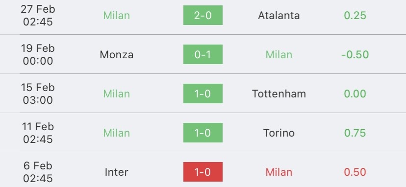 สถิติ 5 นัด เอซี มิลาน