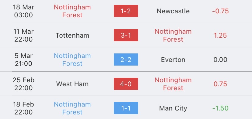 สถิติ 5 นัด น็อตติ้งแฮม ฟอเรสต์