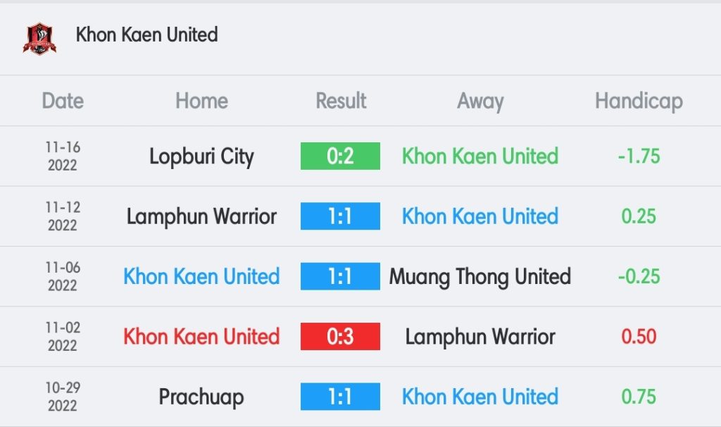 สถิติ 5 นัด ขอนแก่น ยูไนเต็ด