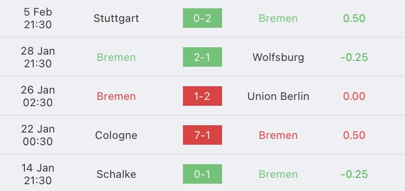 สถิติ 5 นัด แวเดอร์ เบรเมน