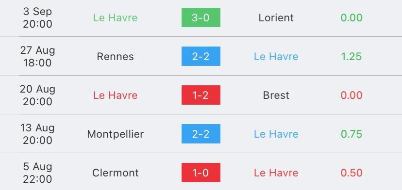 สถิติ 5 นัด เลอ อาร์ฟ