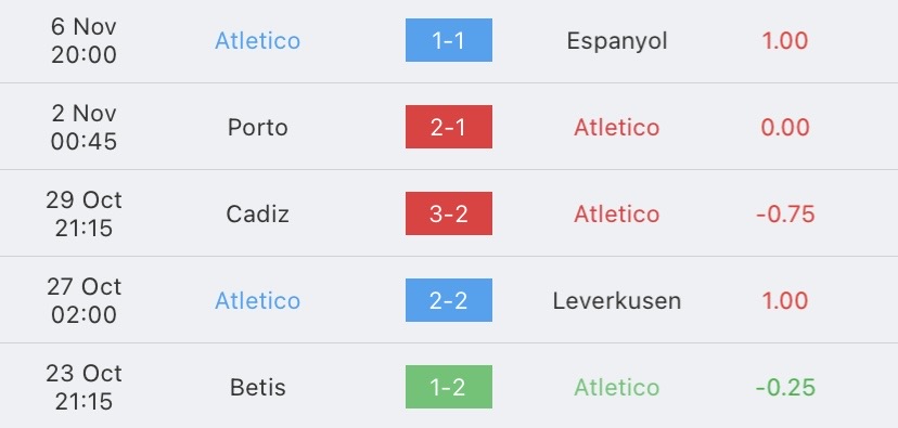 สถิติ 5 นัด แอตเลติโก มาดริด