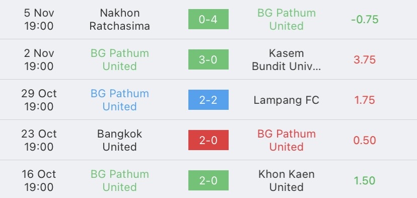 สถิติ 5 นัด บีจีปทุม ยูไนเต็ด