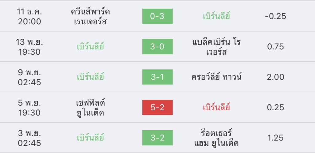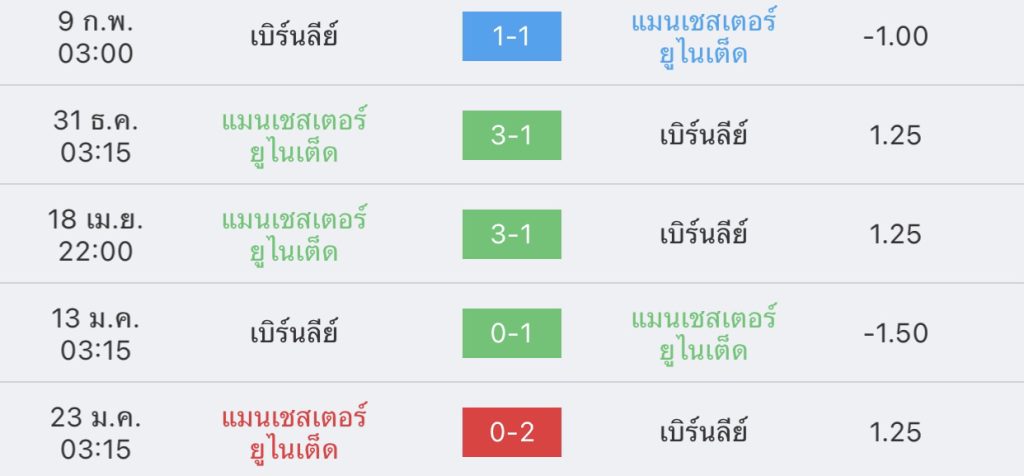 สถิติการพบกัน 5 เกมหลังสุด