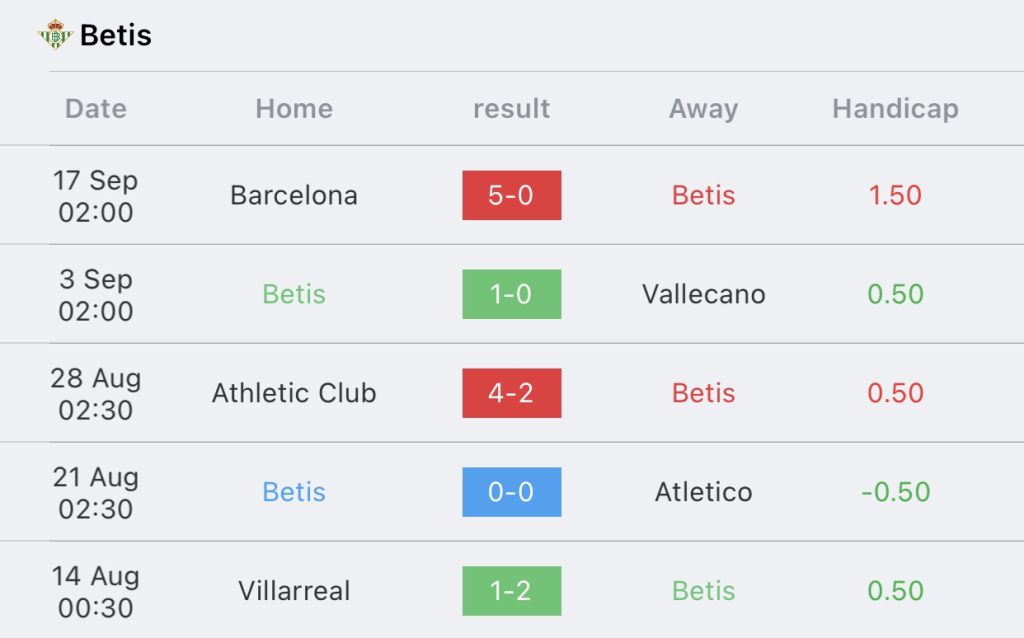 สถิติ 5 นัด เรอัล เบติส