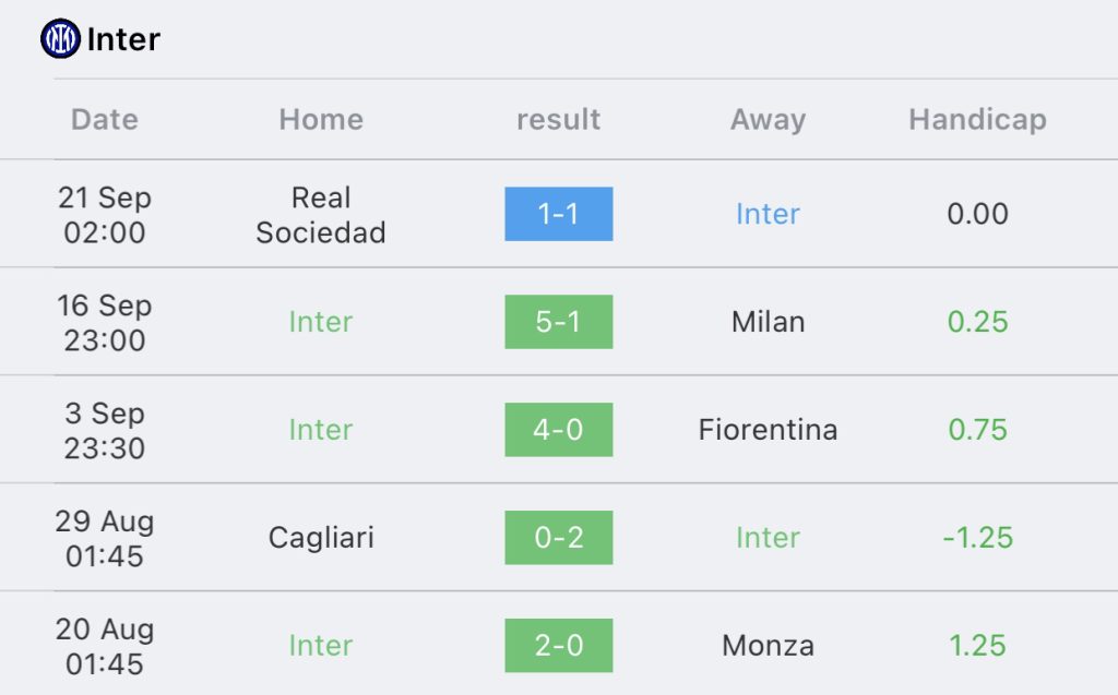 สถิติ 5 นัด อินเตอร์ มิลาน