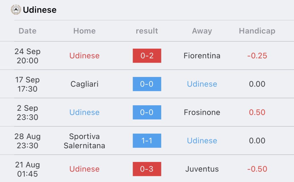 อูดิเนเซ่ (3-5-2) : มาร์โก ซิลเวสตรี – คริสเตียน คาบาเซเล่, ยาก้า บิโยล, นาอูเอน เปเรซ – ชูเอา แฟร์เรยร่า, ลาซาร์ ซามาร์ดซิช, วัลเลซ, ซานดี้ ลอฟริช, ฮัสซาเน่ กามาร่า – ฟลอริย็อง โตแว็ง, ลอเรนโซ่ ลุคก้า