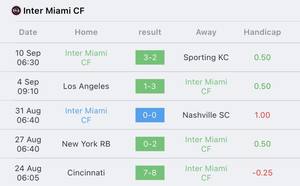 สถิติ 5 นัด อินเตอร์ ไมอามี่