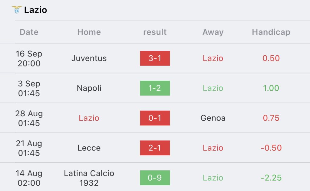 สถิติ 5 นัด ลาซิโอ