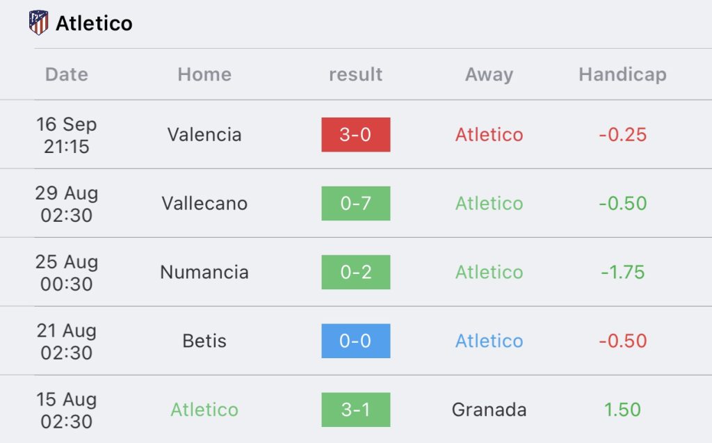 สถิติ 5 นัด แอตเลติโก มาดริด