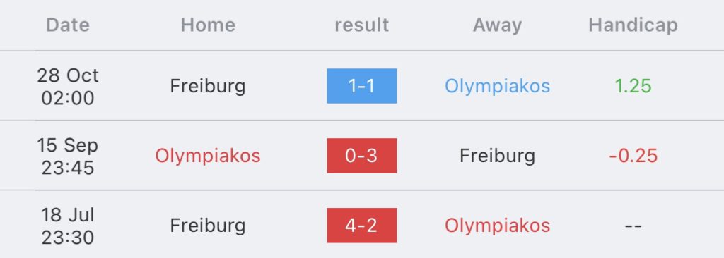 ศึกฟุตบอลยูฟ่า ยูโรป้าลีก รอบแบ่งกลุ่มนัดแรกของกลุ่มเอ เวลา 02.00 น. โอลิมเปียกอส ทีมจากซูเปอร์ลีก กรีซ จะทำการเปิดสนาม คาไรสคาคิส ต้อนรับการมาเยือนของ ไฟร์บวร์ก ทีมจากบุนเดสลีกา เยอรมัน คู่นี้เคยฟาดแข้งกันเพียง 3 นัดเท่านั้น และเป็นทางฝั่งของผู้มาเยือน ไฟร์บวร์ก มีสถิติที่เหนือกว่าโดยถล่มไปถึง 2 นัด และเสมอ 1 นัด ยังไม่พ่ายให้กับ โอลิมเปียกอส เลยสักนัด เจ้าถิ่นเป็นทีมจากซูเปอร์ลีก กรีซ และเปิดฤดูกาลมาด้วยฟอร์มที่ร้อนแรงยังไม่พ่ายเลยสักนัด แต่เมื่อเทียบกับบุนเดสลีกาแล้วความเดือดมันต่างกันโดยสิ้นเชิง อย่างไรก็ตามผู้มาเยือน ไฟร์บวร์ก ช่วงนี้มีฟอร์มที่ไม่ค่อยดีนักโดยเฉพาะฟอร์มการเล่นนอกบ้าน เกมนี้บอลออกได้หลายหน้าแต่ใจมองไปที่ฝั่งของเจ้าถิ่น โอลิมเปียกอส ถึงแม้ว่าจะดูเป็นรอง แต่เชื่อได้เลยว่าเจ้าถิ่นมีดีพอที่จะไม่แพ้ในค่ำคืนนี้