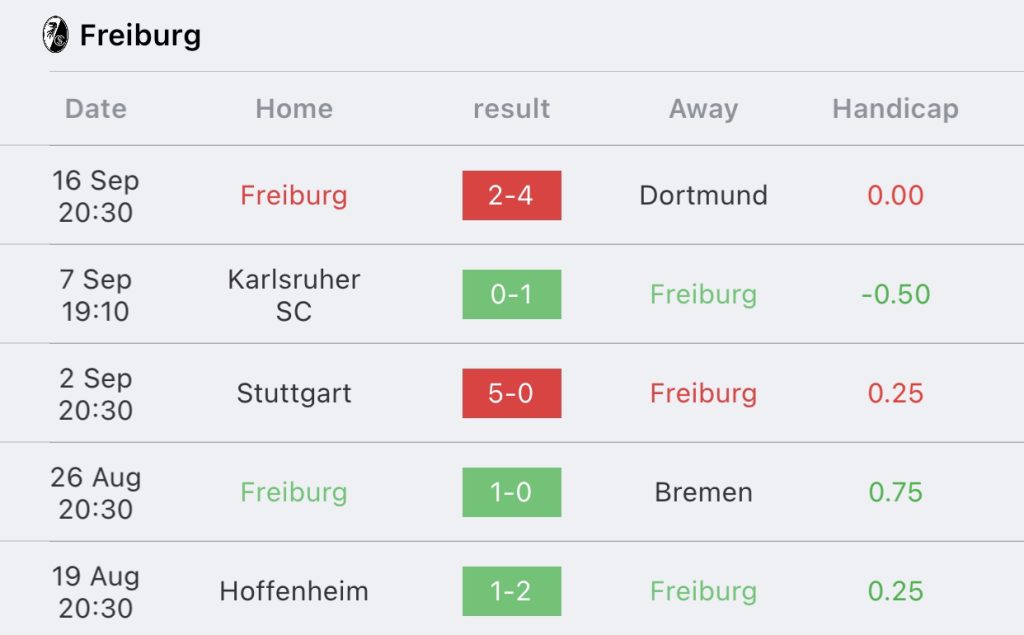 ไฟรบวร์ก (4-2-3-1) : โนอาห์ อาตูโบลู – ฟิลิพพ์ เลียนฮาร์ท, มานูเอล กึนเด่, มัทธิอัส กินเทอร์, ลูคัส คืบเลอร์ – นิโคลัส เฮิฟเลอร์, มาริโอ เอ็กเกชไตน์ – ลูคัส เฮอเลอร์, ริทสึ โดอัน, วินเชนโซ่ กรีโฟ่ – มิชาเอล เกรกอริทส์ช