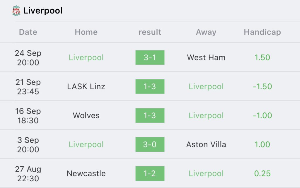 สถิติ 5 นัด ลิเวอร์พูล