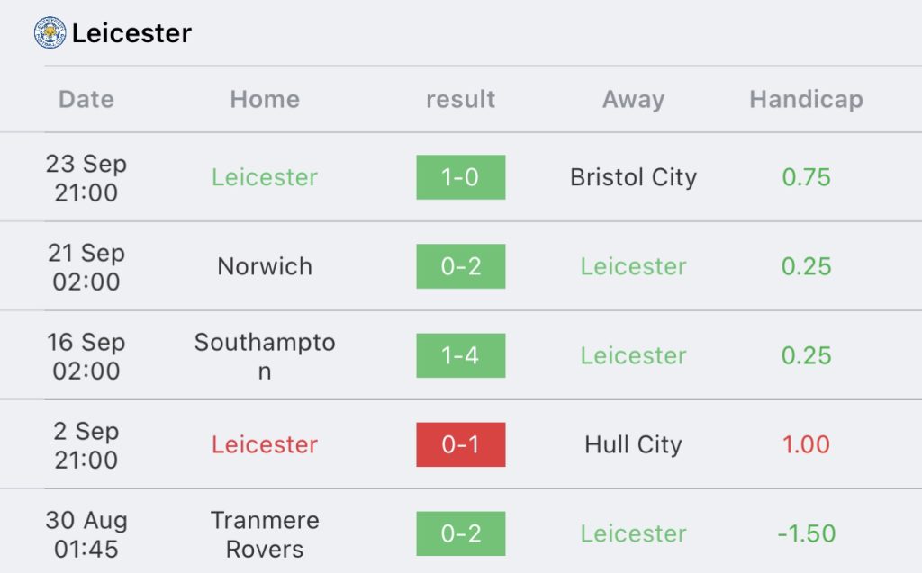 สถิติ 5 นัด เลสเตอร์ ซิตี้