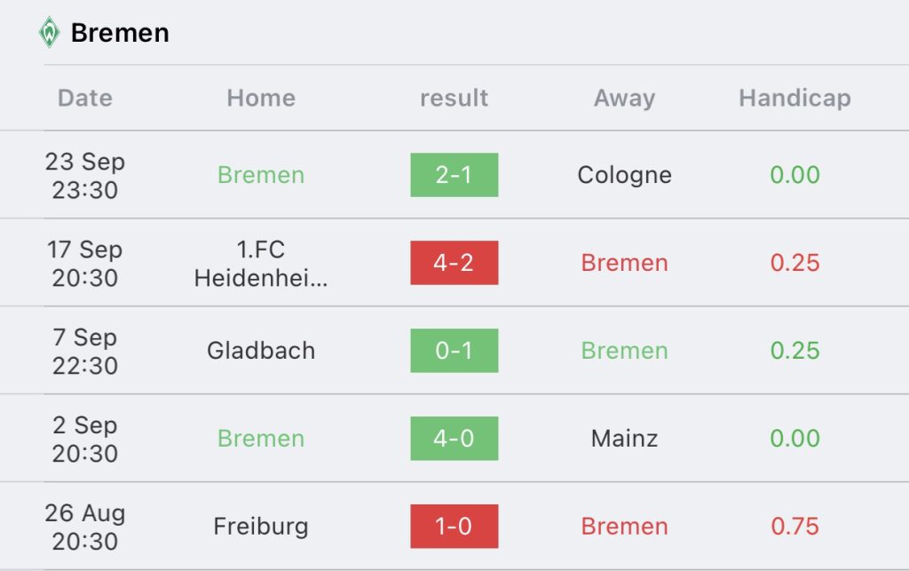 สถิติ 5 นัด แวร์เดอร์ เบรเมน