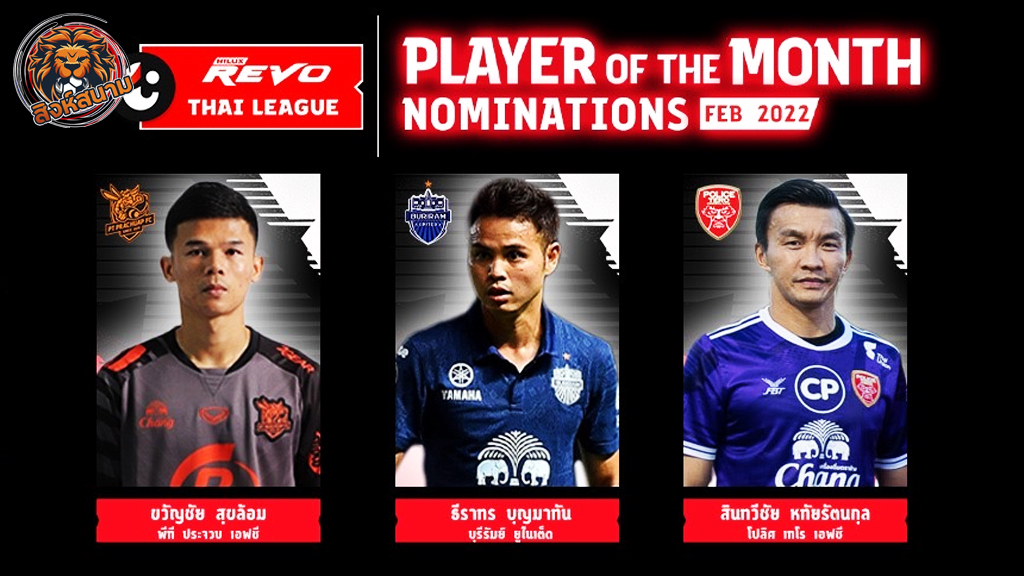 ดีทุกราย! “ไทยลีก” เผยชื่อ 3 แข้ง ลุ้นคว้ารางวัลนักเตะยอดเยี่ยม เดือน ก.พ. 65
