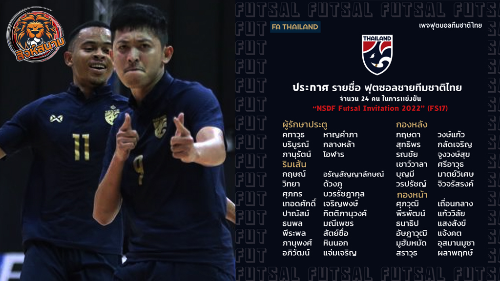 เต็มสูบ! “ส.บอลไทย” ประกาศชื่อ 24 แข้ง “โต๊ะเล็กไทย” ลุยศึก NSDF 2022