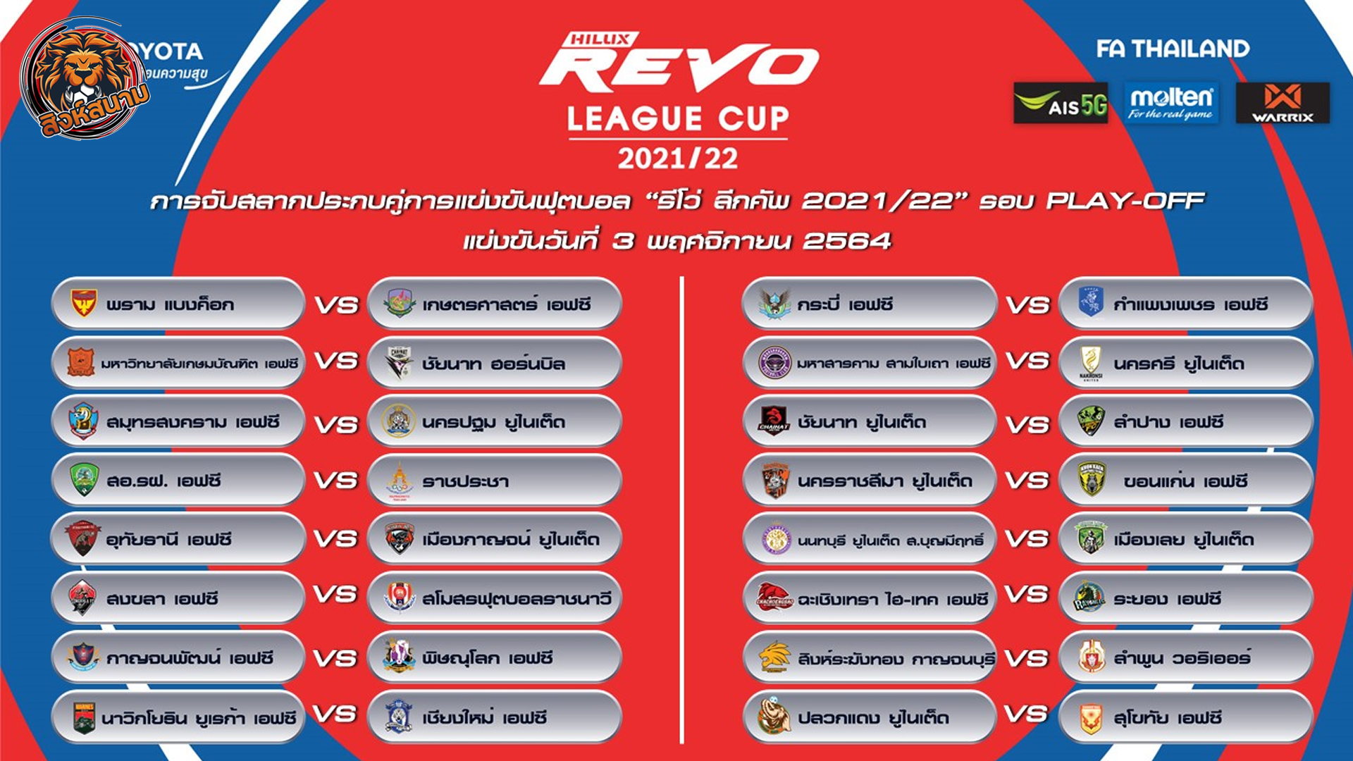“อุทัยฯ” ชน “เมืองกาญจน์ฯ”! ผลการจับสลากศึกรีโว่ ลีก คัพ 2021/22 รอบเพลย์ออฟ