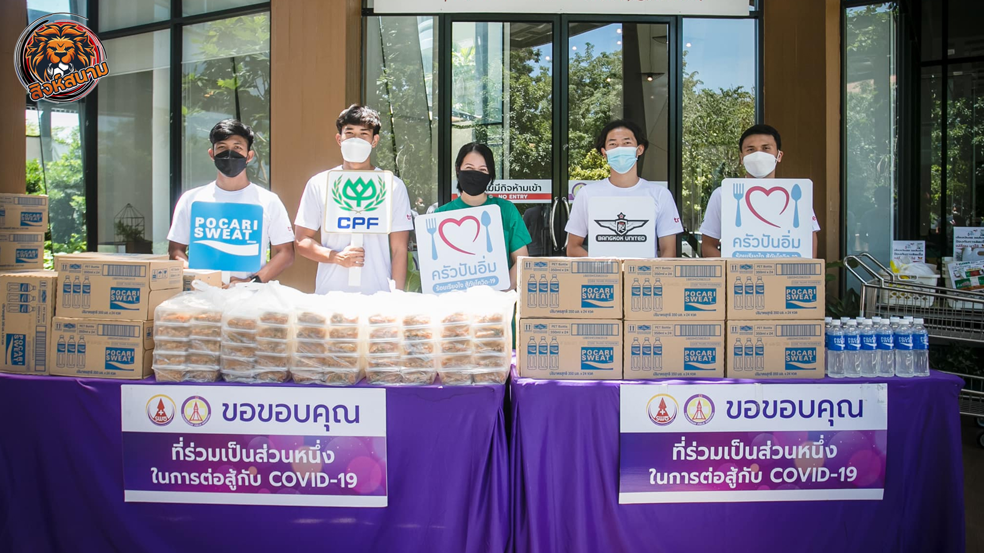 “แข้งเทพ” ร่วมกับโครงการ “ครัวปันอิ่ม” ส่งมอบอาหารช่วยแพทย์ “รพ.สนามธรรมศาสตร์”