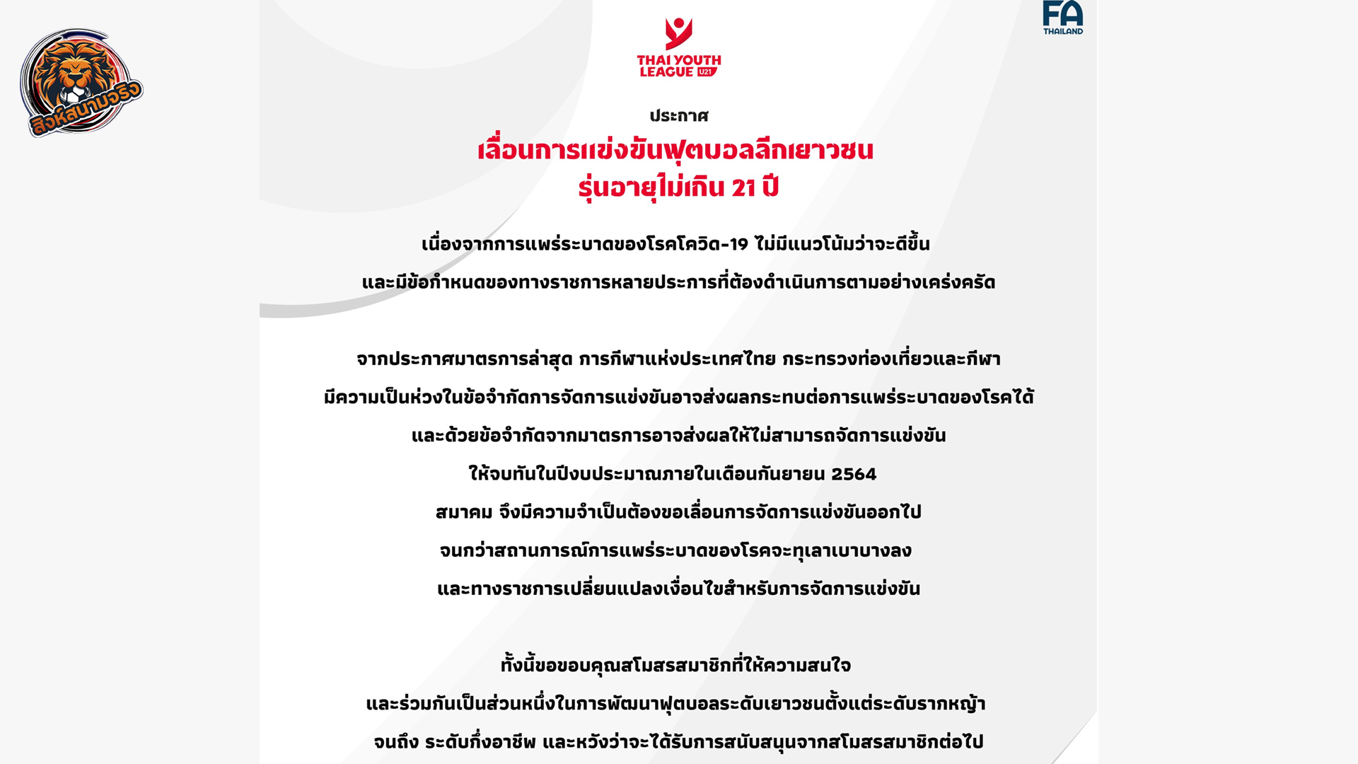 สะเทือนบอลเด็ก! “ลีกเยาวชน U21 ปี” เลื่อนแข่งไร้กำหนดหลังโควิดระบาดหนัก