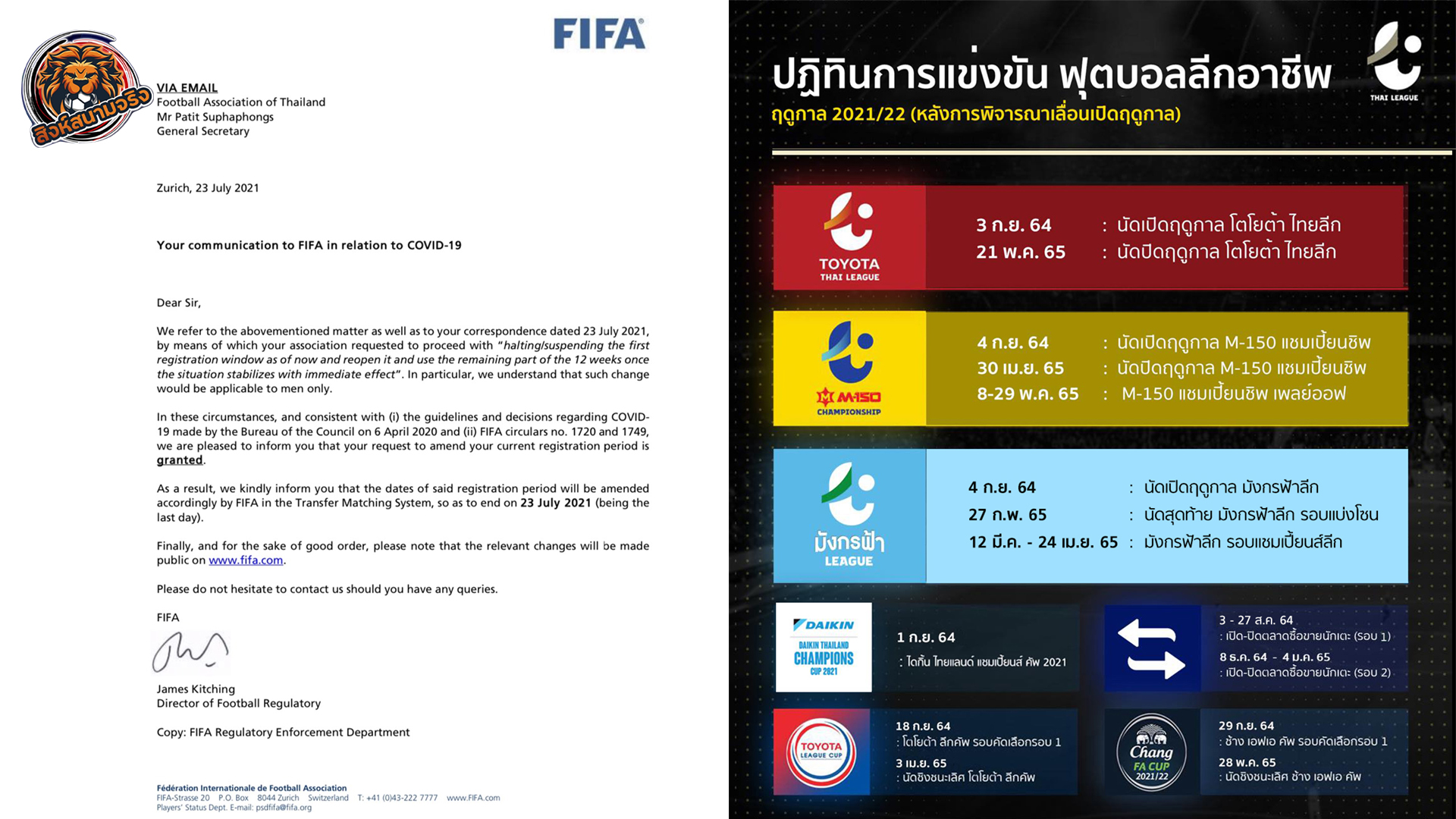 พิษโควิด! “ฟีฟ่า” อนุมัติ “ไทยลีก” หยุด Transfer Window ให้กรณีพิเศษ