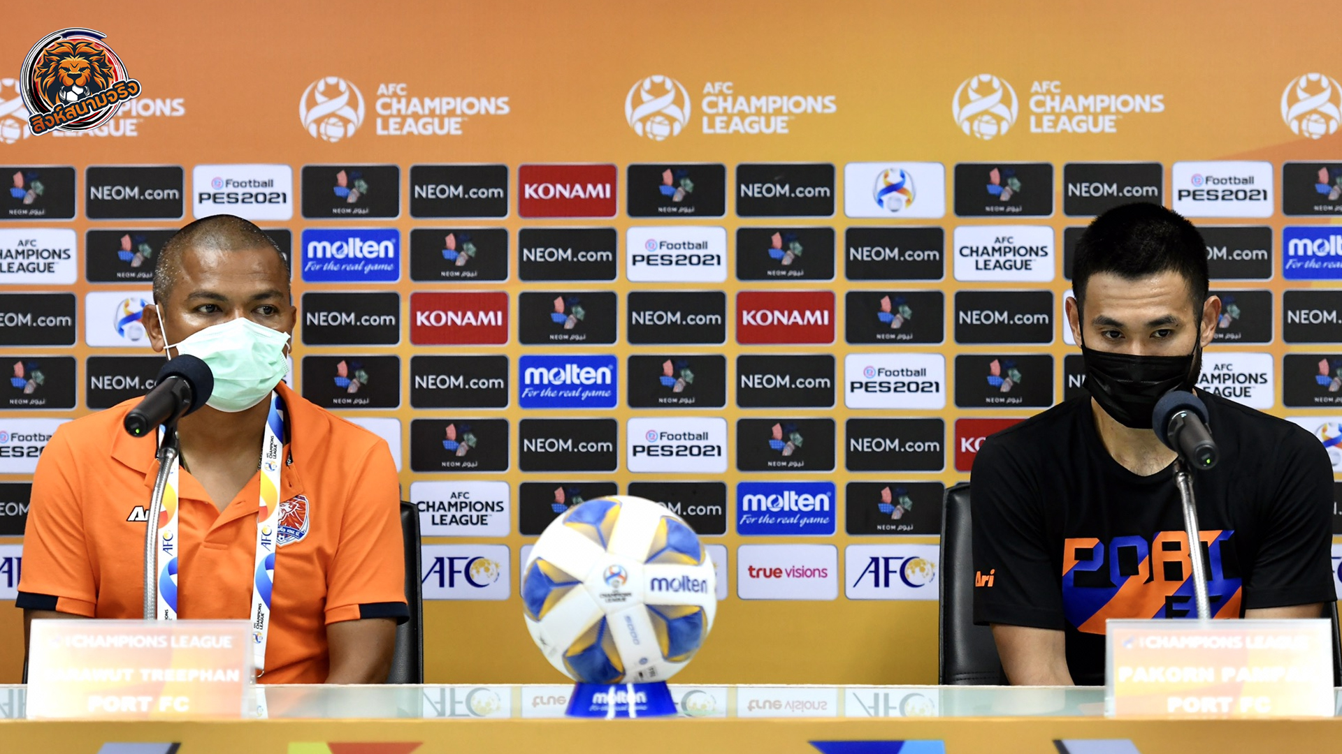 “โค้ชอู๊ด” ควง “ปกรณ์” แถลงหลังเกม “สิงห์เจ้าท่า” ถล่ม “กว่างโจว” 3-0 ศึก ACL 2021