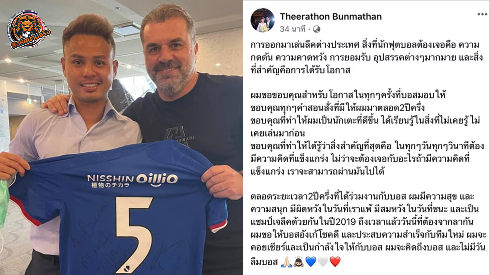 สุดซึ้ง! “ธีราทร” โพสต์ลา “อังเก้” หลังโยกคุม “เซลติก” ซีซั่นหน้า