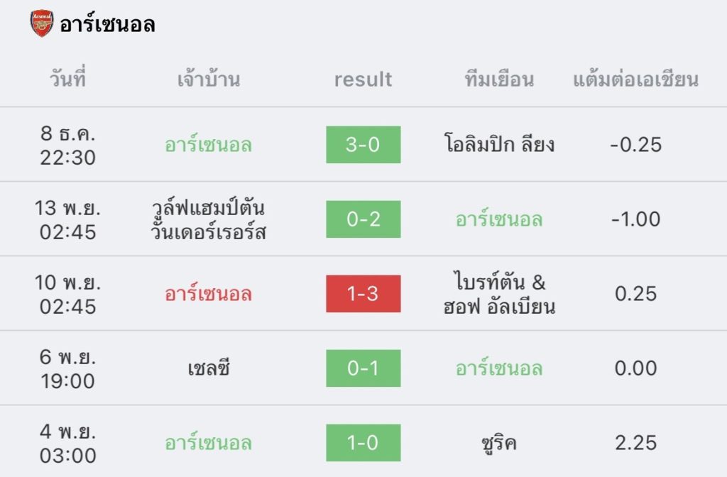 สถิติ 5 นัด อาร์เซนอล
