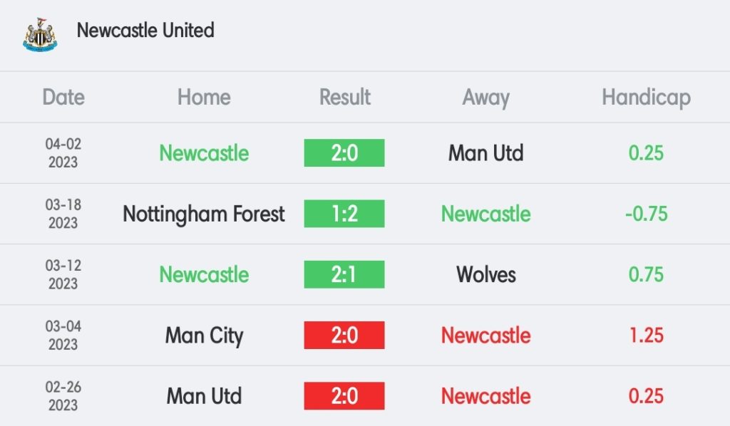 สถิติ 5 นัด นิวคาสเซิ่ล
